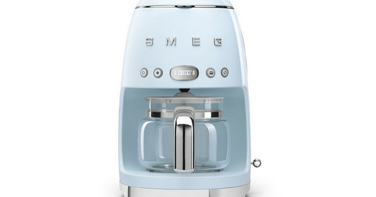 Macchina per la preparazione di caffè filtrato, a disposizione nelle tonalità pastello panna, azzurro, verde, rosa, rosso, bianco e nero.