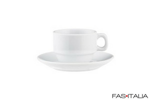 Tazzina da caffè impilabile colore bianco. Capacità 8 cl. Si abbina al piattino cod. 12668. Dimensioni: diametro 6,6 cm, altezza 5 cm.