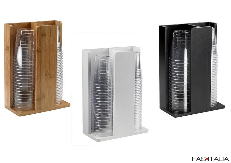 Porta bicchieri e tazze pensato per un uso versatile con bicchieri in plastica o vetro impilabili e tazze da caffè o da colazione impilabili.